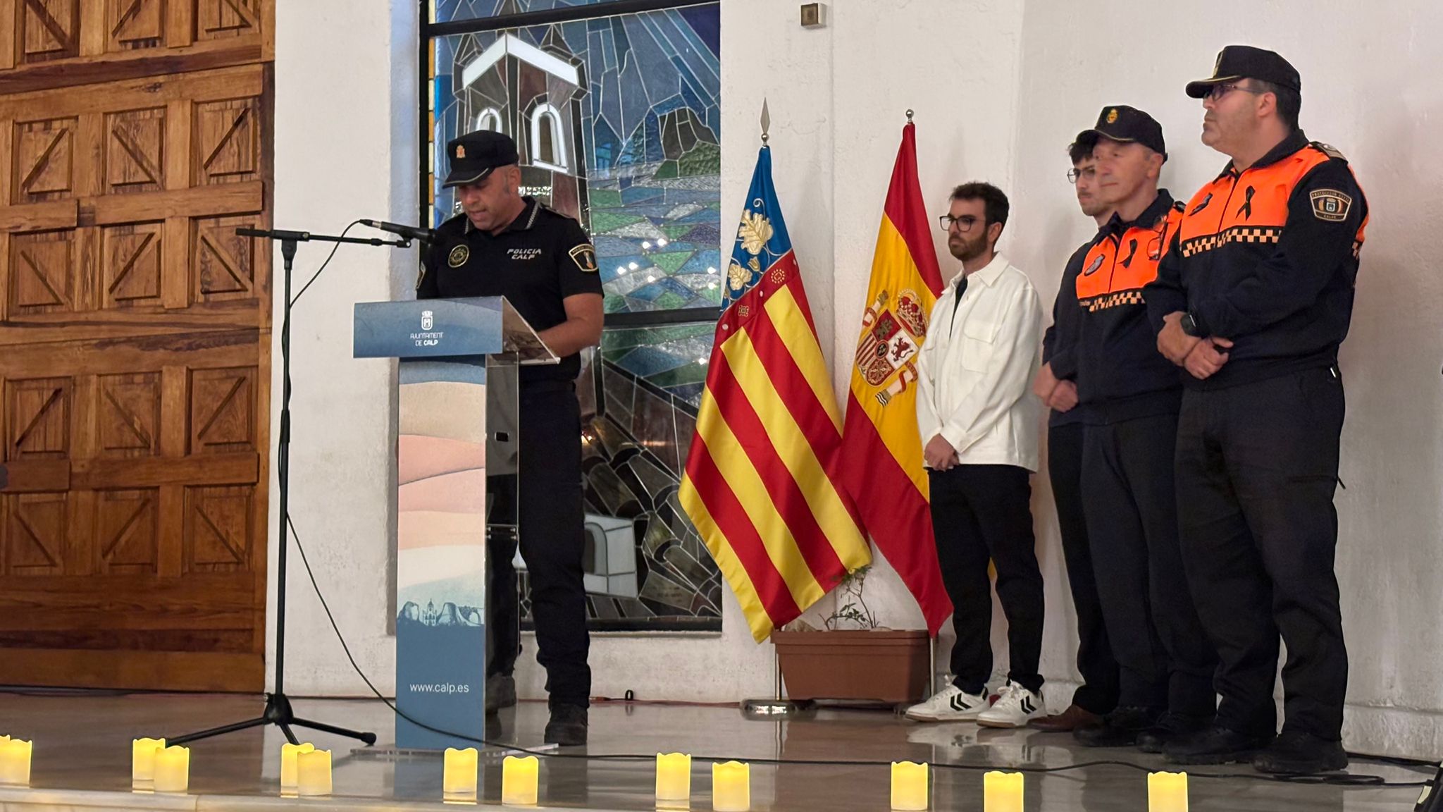 El homenaje contó con la participación de representantes de la Policía Local, Protección Civil y de los voluntarios de Calp, que el pasado año se desplazaron para colaborar en las tareas de ayuda en los municipios afectados.