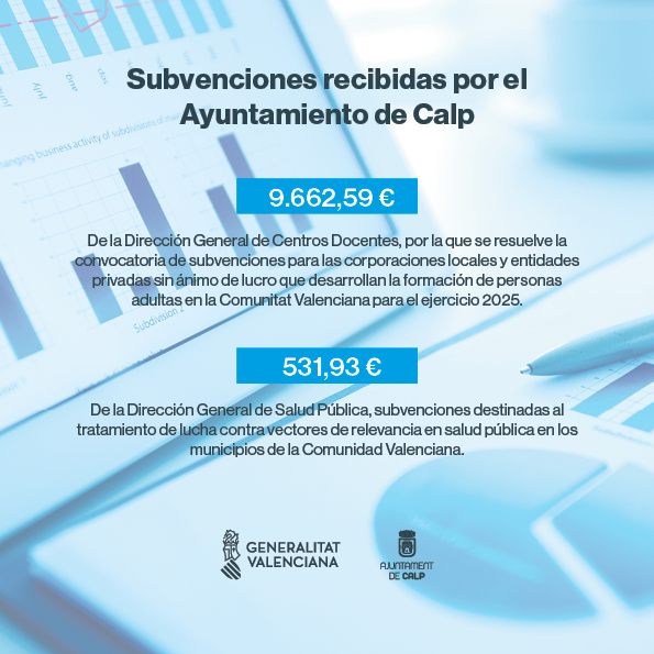 El Ayuntamiento de Calp ha recibido diversas ayudas económicas por parte de la Generalitat Valenciana destinadas a fomentar la formación, el empleo y la salud pública en el municipio.