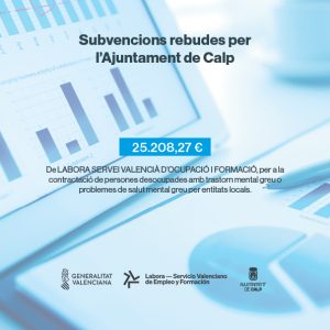 El Ayuntamiento de Calp ha recibido diversas ayudas económicas por parte de la Generalitat Valenciana destinadas a fomentar la formación, el empleo y la salud pública en el municipio.