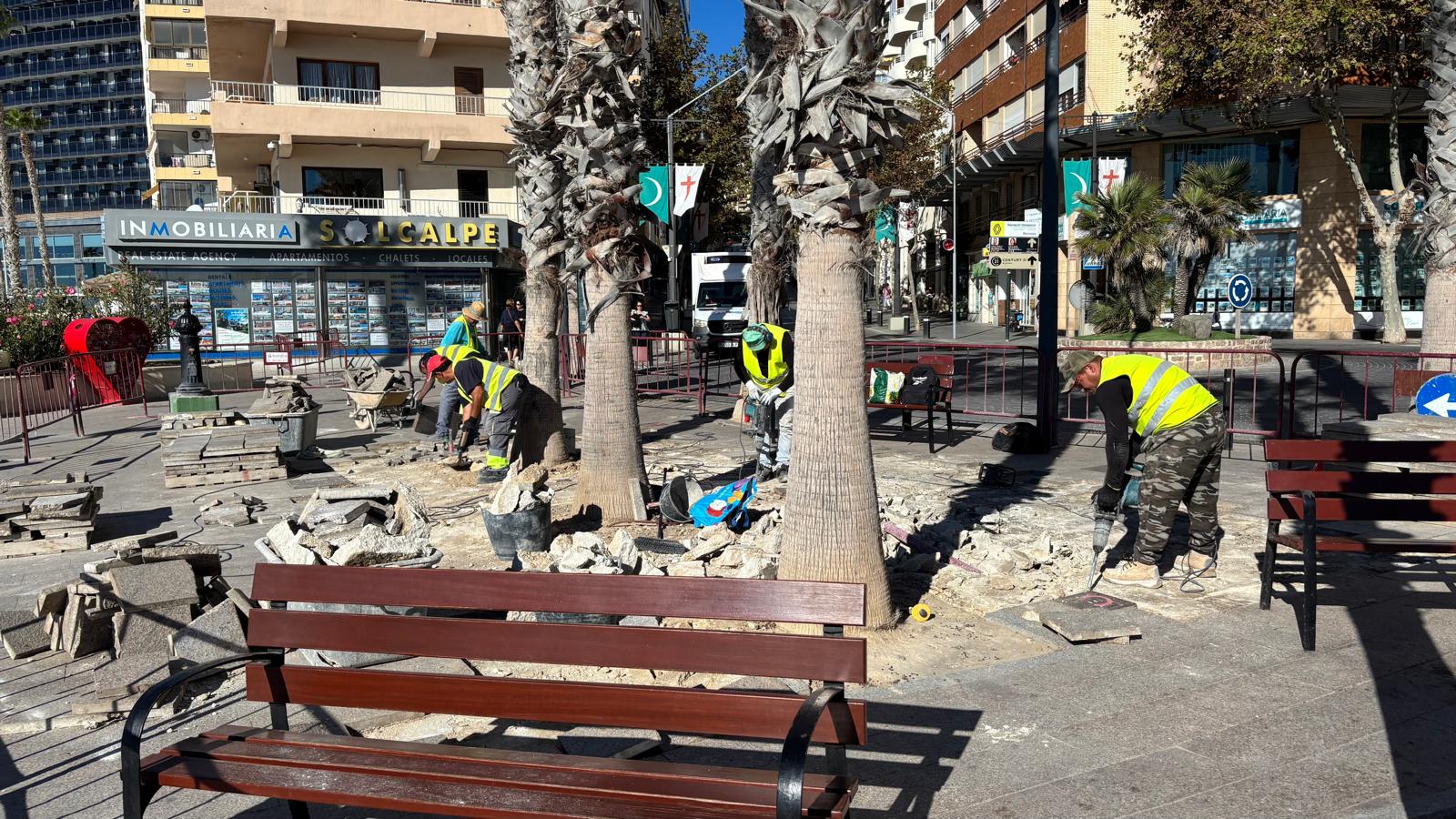 El Ayuntamiento de Calp sigue avanzando en las obras de mantenimiento y adecuación del paseo marítimo de la playa Arenal-Bol, que en esta fase se están desarrollando en la Plaza Colón.