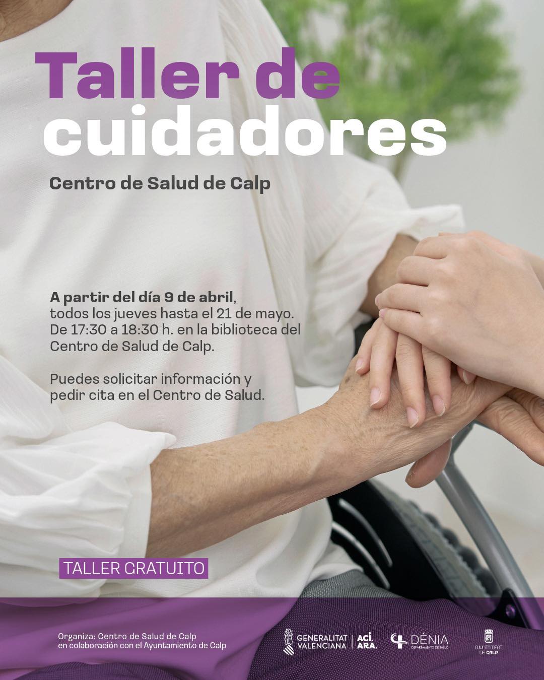 A partir del 9 de abril, todos los jueves y hasta el 21 de mayo, se impartirá un taller gratuito dirigido a personas cuidadoras.