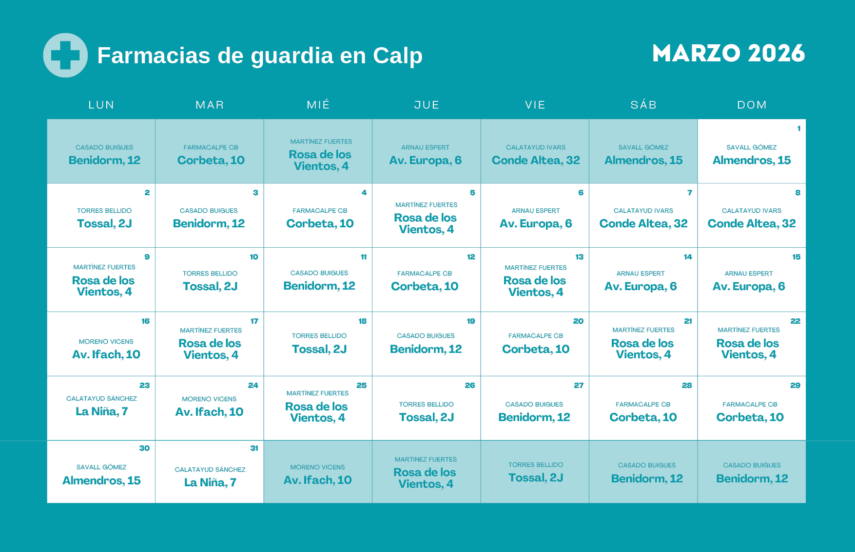 💊 Farmacias de guardia en Calp | Marzo 2026