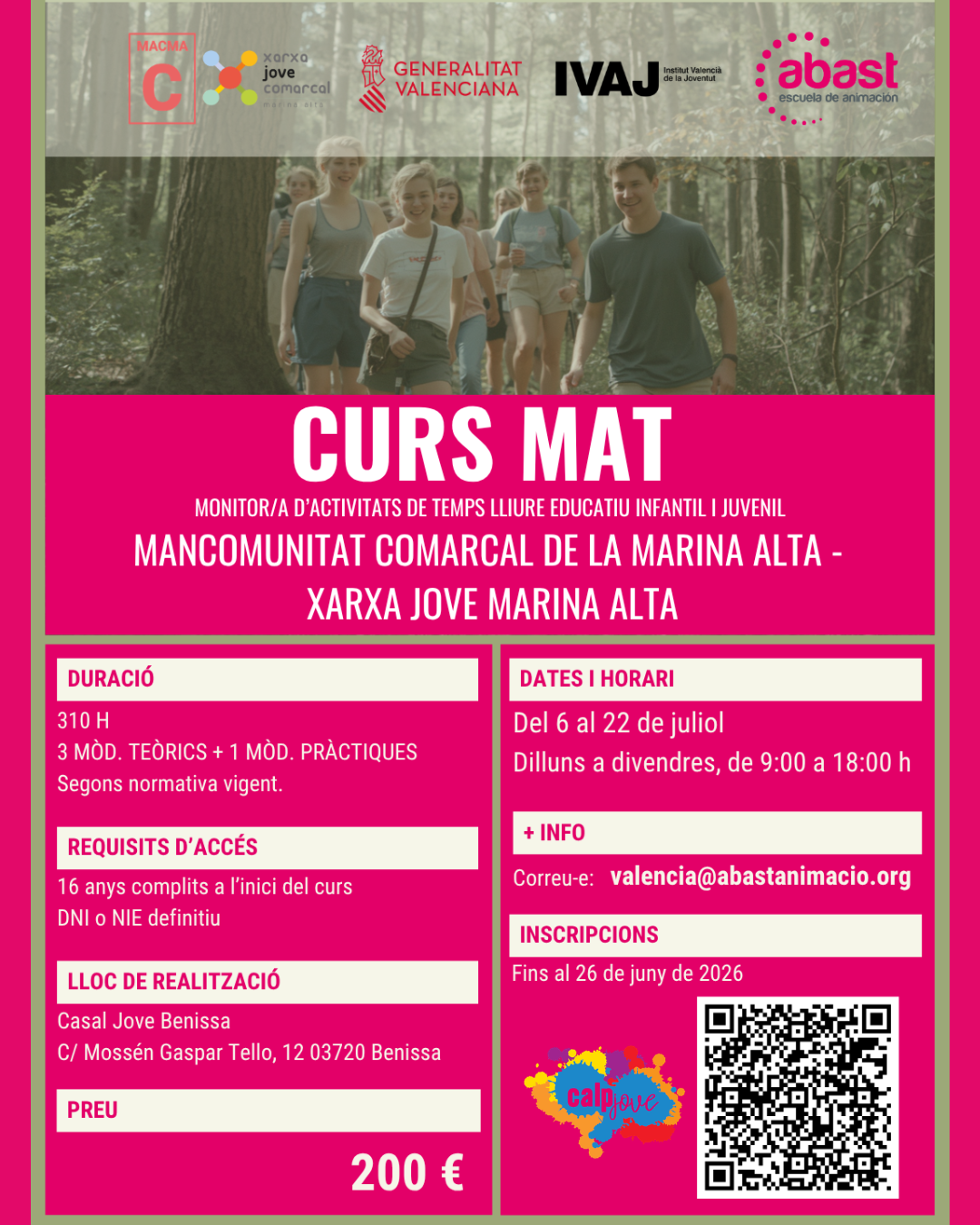 « Todos los Eventos Este evento ha pasado. 📢📢CURSO DE MONITOR/A DE ACTIVIDADES DE TIEMPO LIBRE EDUCATIVO INFANTIL Y JUVENIL DE LA MARINA ALTA 15 abril « 🎶 Calp vuelve a sonar a Cream Pop Qué hacer en Calp este fin de semana » Añadir al calendario Calendario de Google iCalendar Outlook 365 Outlook Live Detalles Fecha: 15 abril Categoría del Evento: Avisos Web: https://docs.google.com/forms/d/17DXiiBaH7-YbNjQiqmEmBcCiVx2BDb215KfjLvycfmo/viewform?edit_requested=true