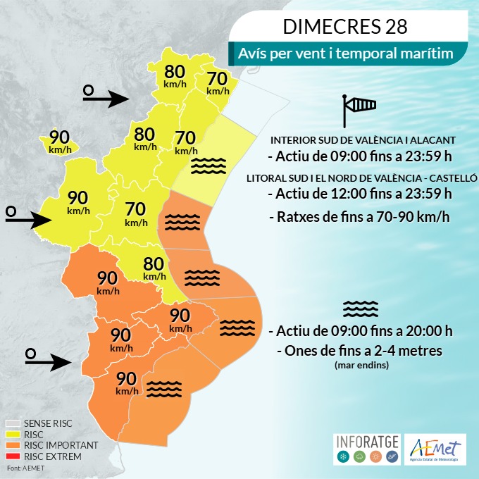 👉 Se recomienda extremar la precaución, evitar zonas expuestas como paseos marítimos, espigones y áreas arboladas, así como asegurar objetos que puedan desprenderse por el viento.